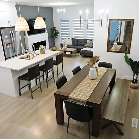 У розпорядженні гостей обідня зона з кавоваркою. Також є електрочайник, холодильник і скляний посуд для самостійного приготування їжі. До аеропорту Міжнародний Едмонтон можна дістатися за 18 хв їзди від вілли.